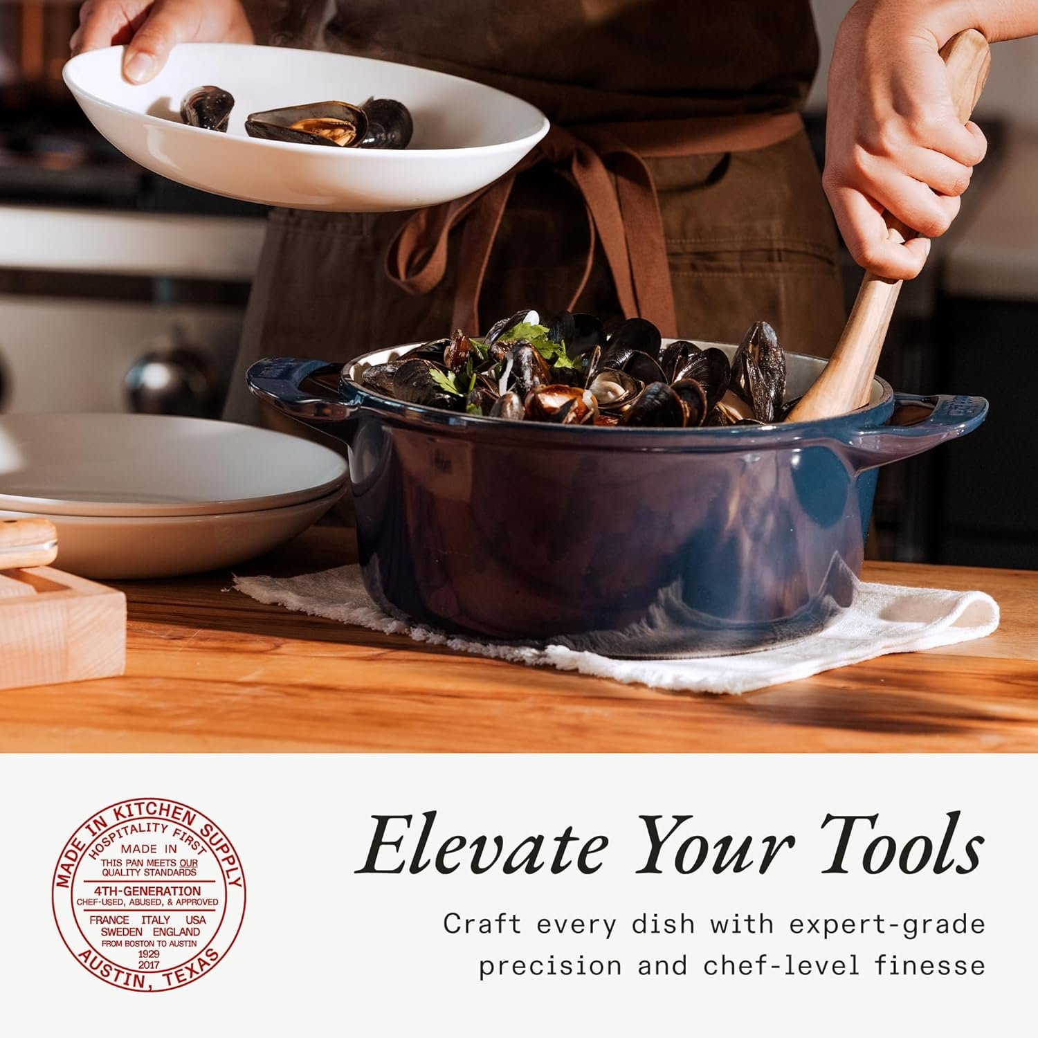 Seguridad: Totalmente libre de PTFE y PFOA; el esmalte vitrificado actúa como barrera protectora segura y no reactiva.