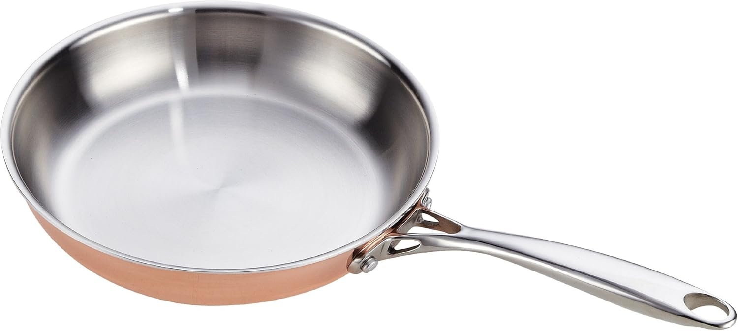 El revestimiento exterior de cobre es principalmente decorativo, ya que la superficie interior en contacto con los alimentos es acero inoxidable seguro y estable.