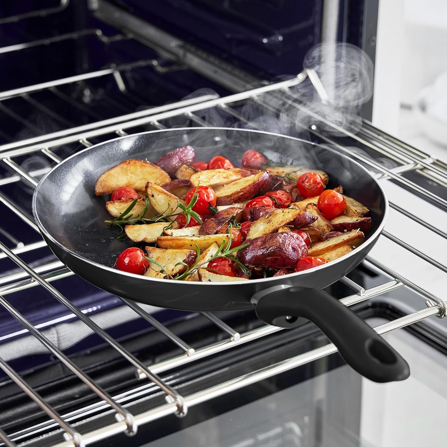 Libre de PFAS, PFOA, plomo y cadmio, con asas de silicona Soft Grip que permanecen frías al tacto y un cuerpo de aluminio reforzado para una cocción uniforme. Su interior cerámico antiadherente ofrece una experiencia de cocina saludable, práctica y sin esfuerzo, ideal para el uso diario.
