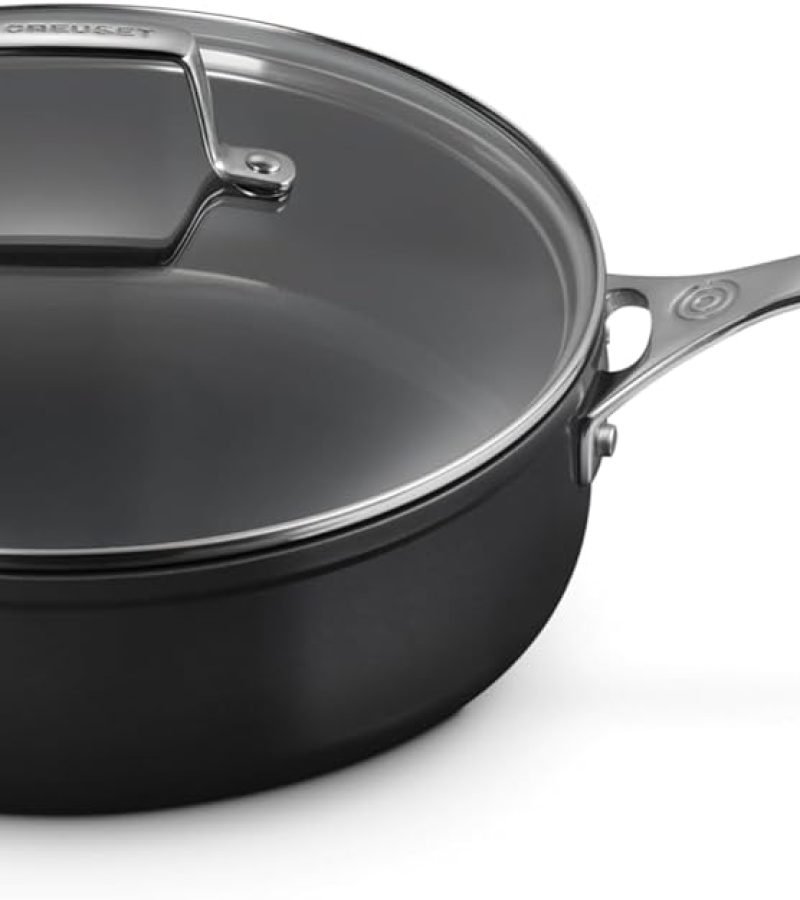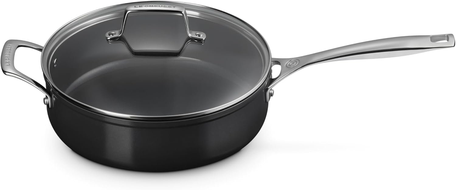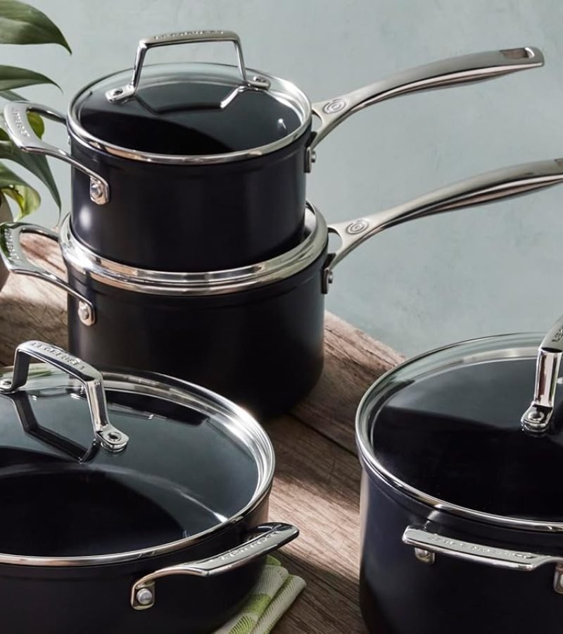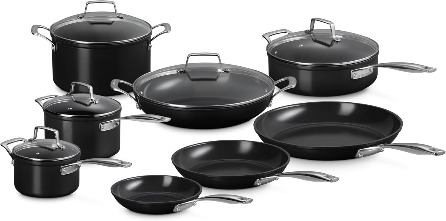 El juego de 13 piezas Le Creuset incluye ollas y sartenes con un recubrimiento antiadherente premium de múltiples capas, reforzado con titanio para una mayor resistencia a rayaduras y una vida útil más larga. Su cuerpo de aluminio anodizado duro, optimizado para un control de calor uniforme, asegura una cocción precisa en todo tipo de recetas.