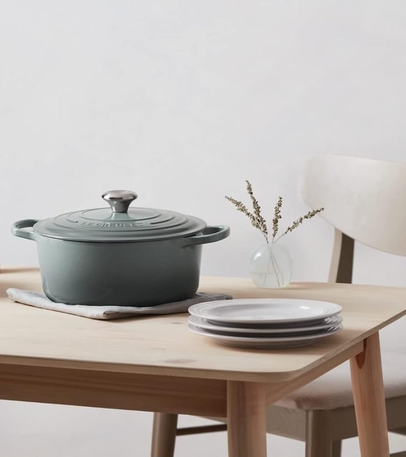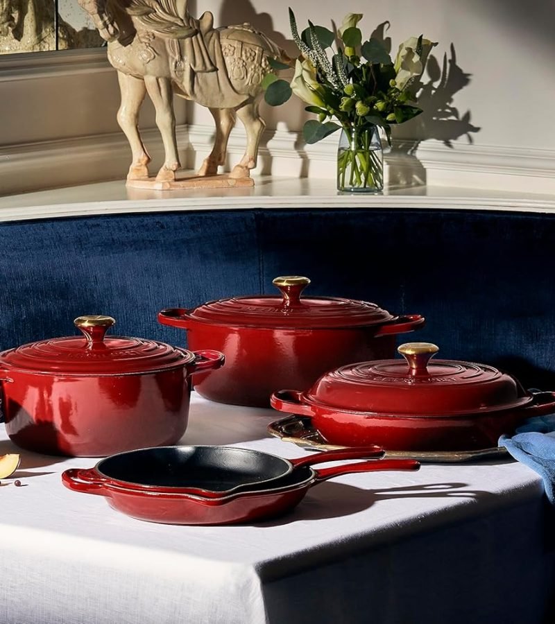 Le Creuset combina la resistencia del hierro fundido esmaltado con una estética icónica que transforma la cocina en un espacio lleno de sabor y color.