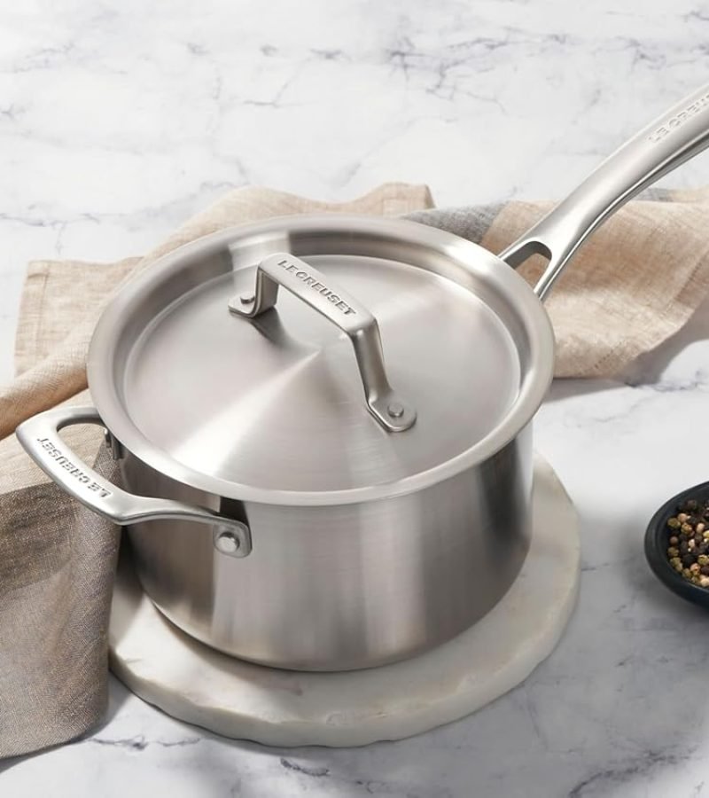 Las ollas Le Creuset de acero multicapa combinan acero y aluminio para una conducción de calor rápida y precisa, ideales para cocciones técnicas y de uso diario.