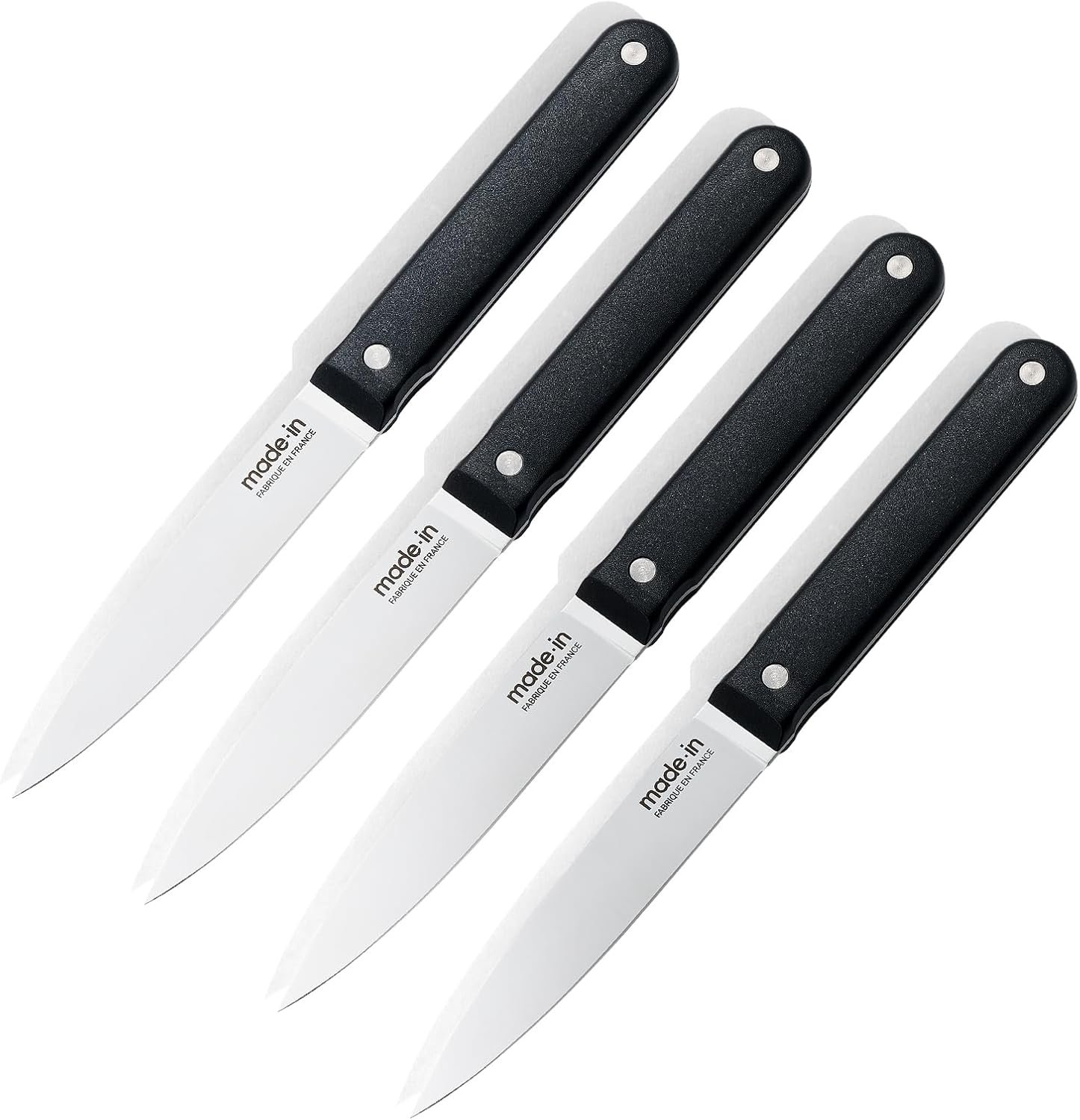 Made In Cookware – Juego de cuchillos para carne (4 piezas) – Fabricado en Francia – Mango negro trufa