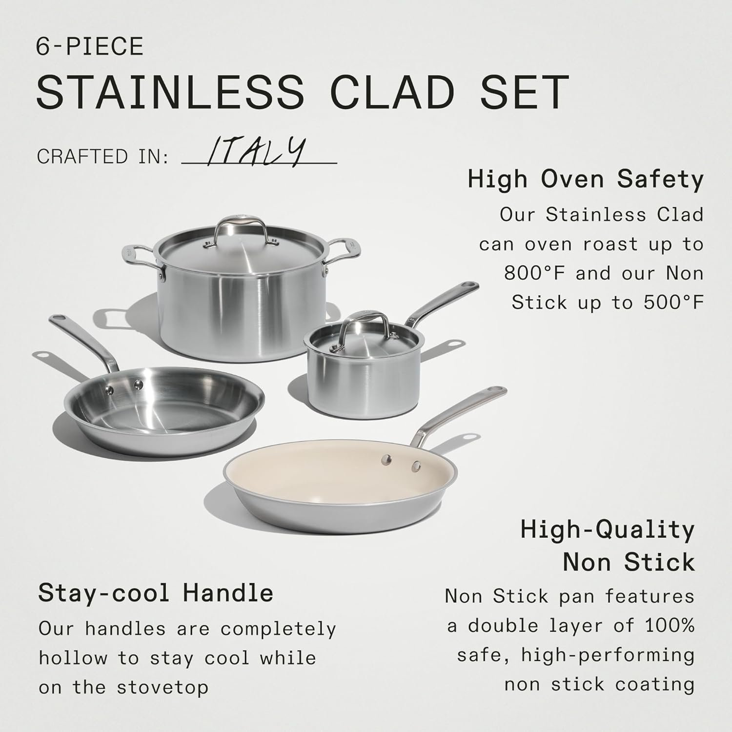 Made In Cookware – Juego de 6 ollas y sartenes de acero inoxidable 5 capas