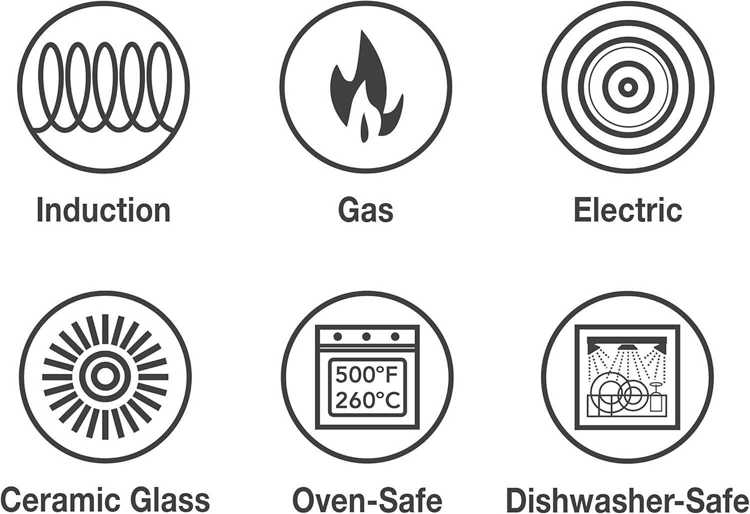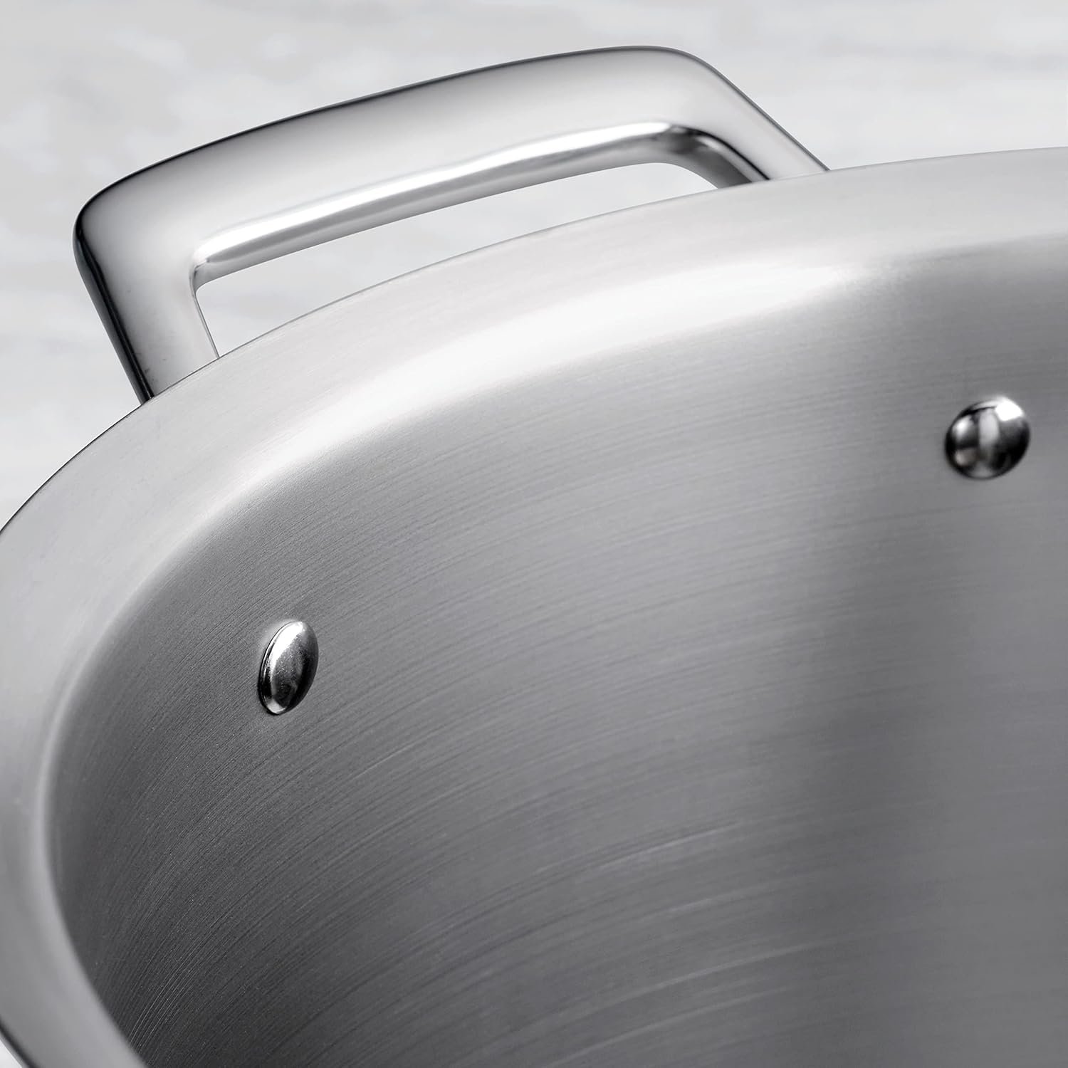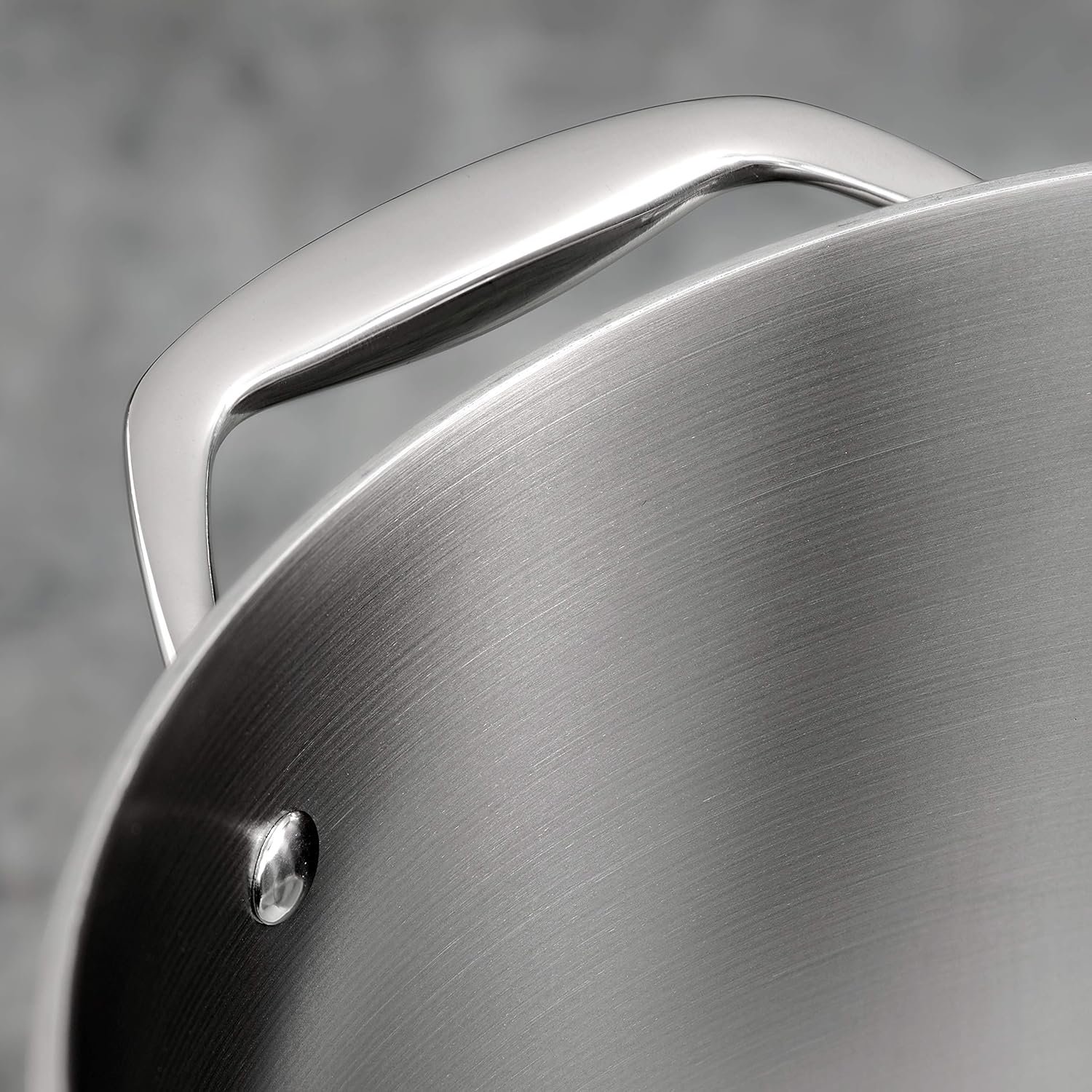 acero – aluminio – acero) que distribuye el calor de forma uniforme y rápida. Su diseño clásico y profesional lo hace compatible con todo tipo de cocinas, incluida la inducción y el horno.