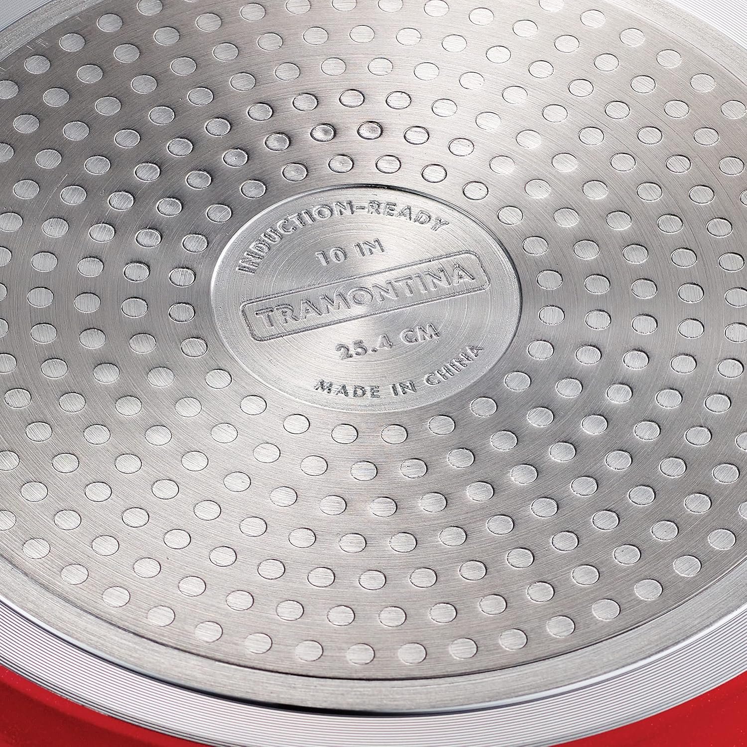 El set Tramontina Cerámica de 10 piezas está compuesto por ollas, cacerolas y sartenes de aluminio de calibre pesado con recubrimiento interior de cerámica antiadherente libre de PFOA y PTFE. Su acabado en color rojo brillante aporta un toque moderno y elegante a la cocina, combinando practicidad con estilo.
