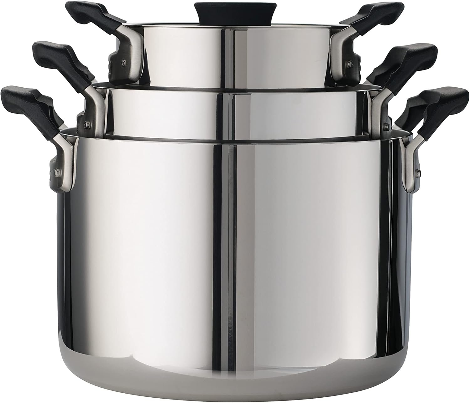 Cada olla cuenta con tapas de acero y mangos ergonómicos que garantizan un uso cómodo y seguro. Su diseño clásico y funcional convierte este juego en una excelente opción para familias que buscan utensilios confiables y accesibles, sin renunciar a la calidad.
