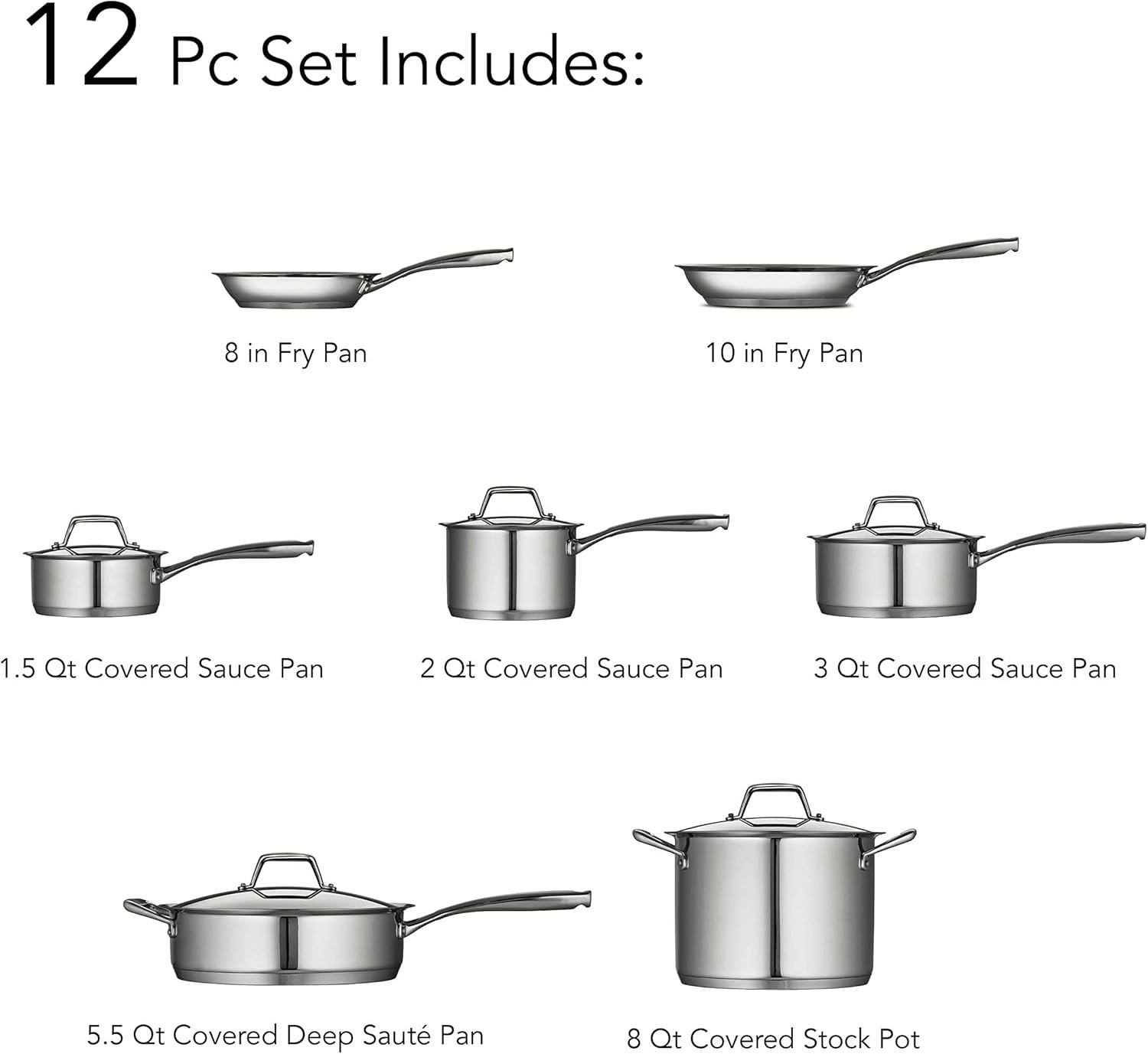 Ollas Tramontina Tri-Ply Clad: set de 14 piezas de acero inoxidable