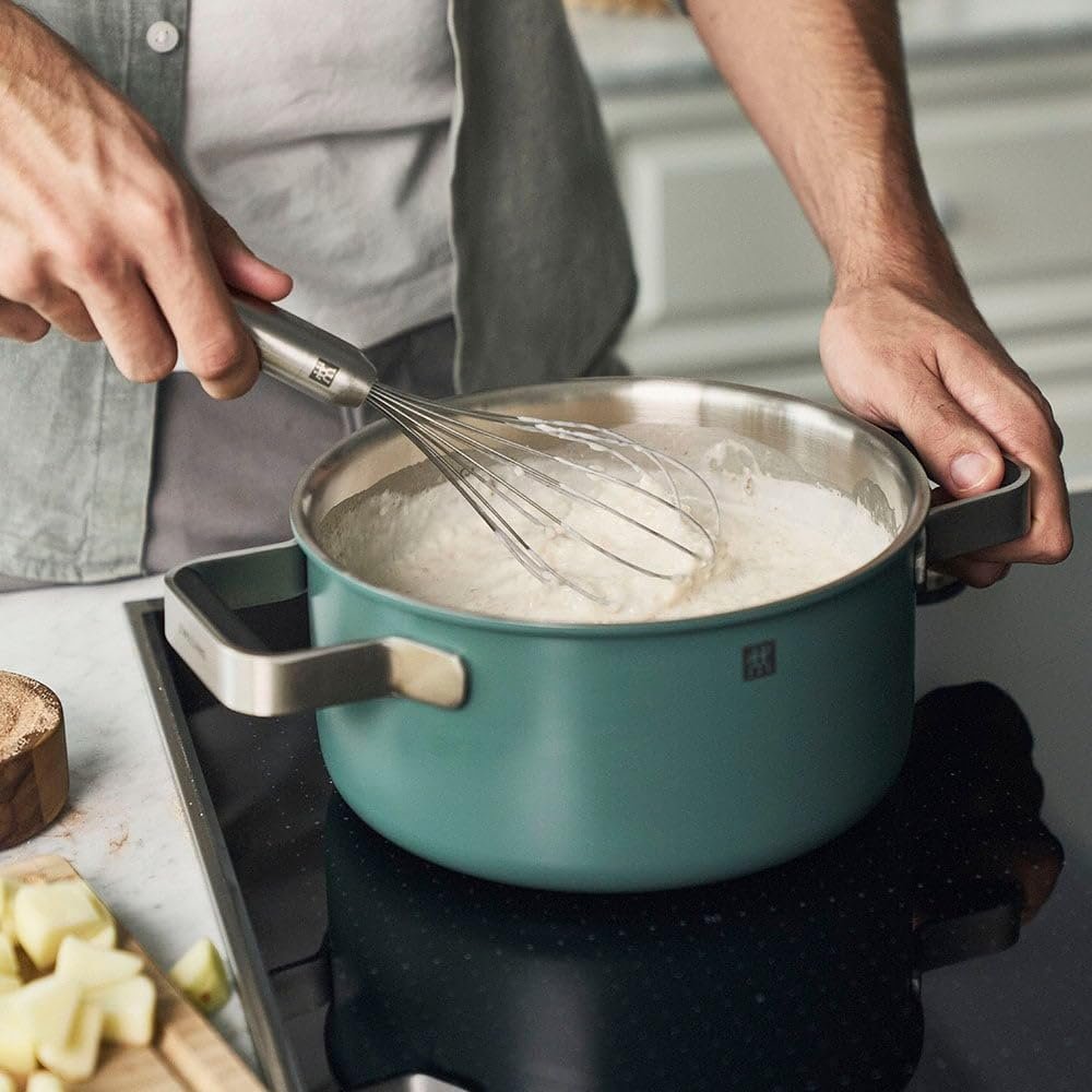Las ollas Zwilling están fabricadas con la tecnología multicapa SIGMA Clad, que combina acero inoxidable 18/10 con un núcleo de aluminio encapsulado. Este diseño logra una distribución uniforme del calor, mayor retención y compatibilidad con todas las cocinas, incluida la inducción.