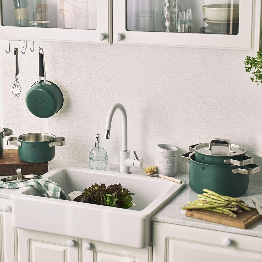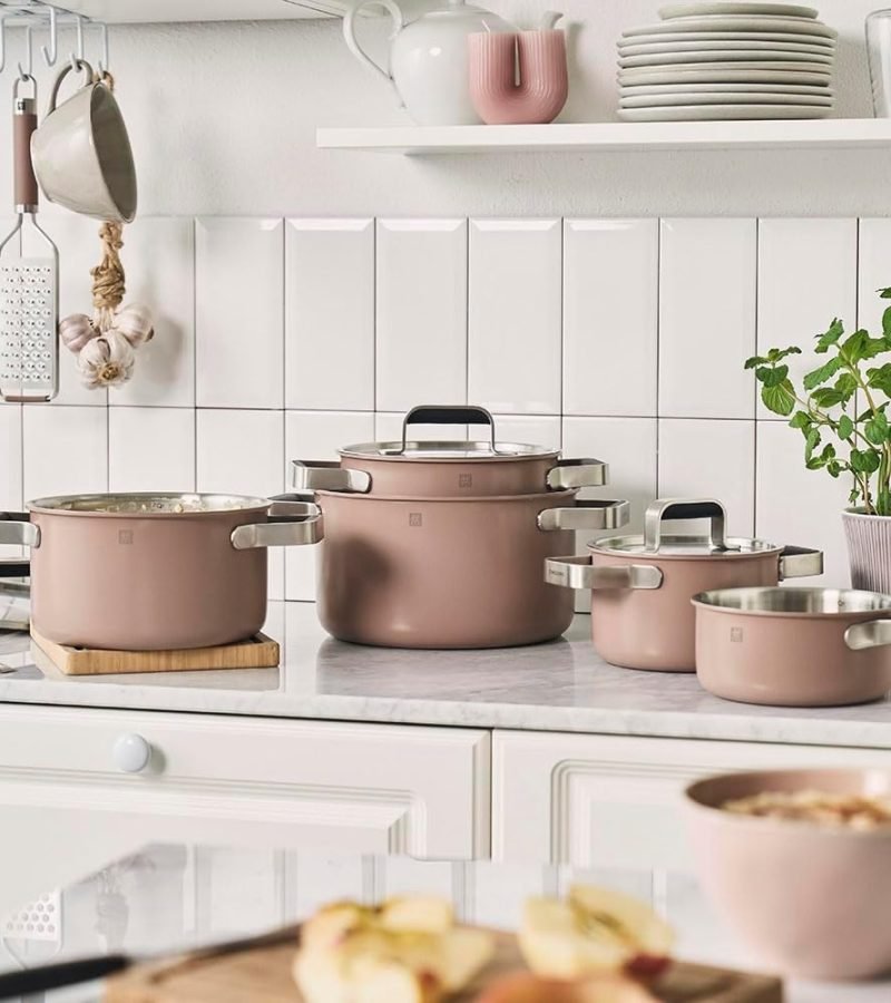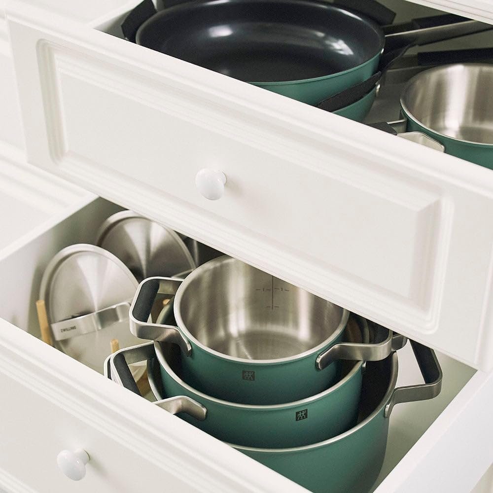 El set Zwilling Pure Cookware ofrece la combinación perfecta entre resistencia y diseño moderno. Cada pieza está fabricada con interior de acero inoxidable 18/10 de 3 capas, que garantiza durabilidad, higiene y distribución uniforme del calor. Su acabado exterior cerámico, añade un estilo único a la cocina, manteniendo las ollas frescas y fáciles de limpiar.