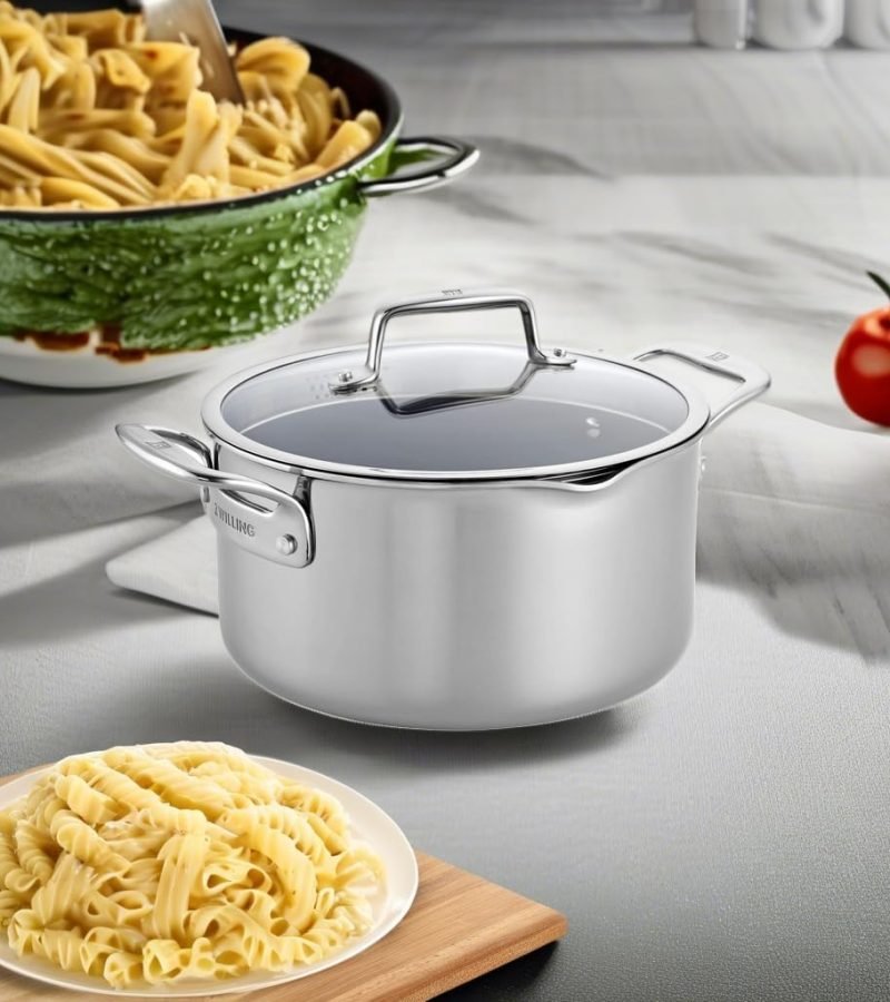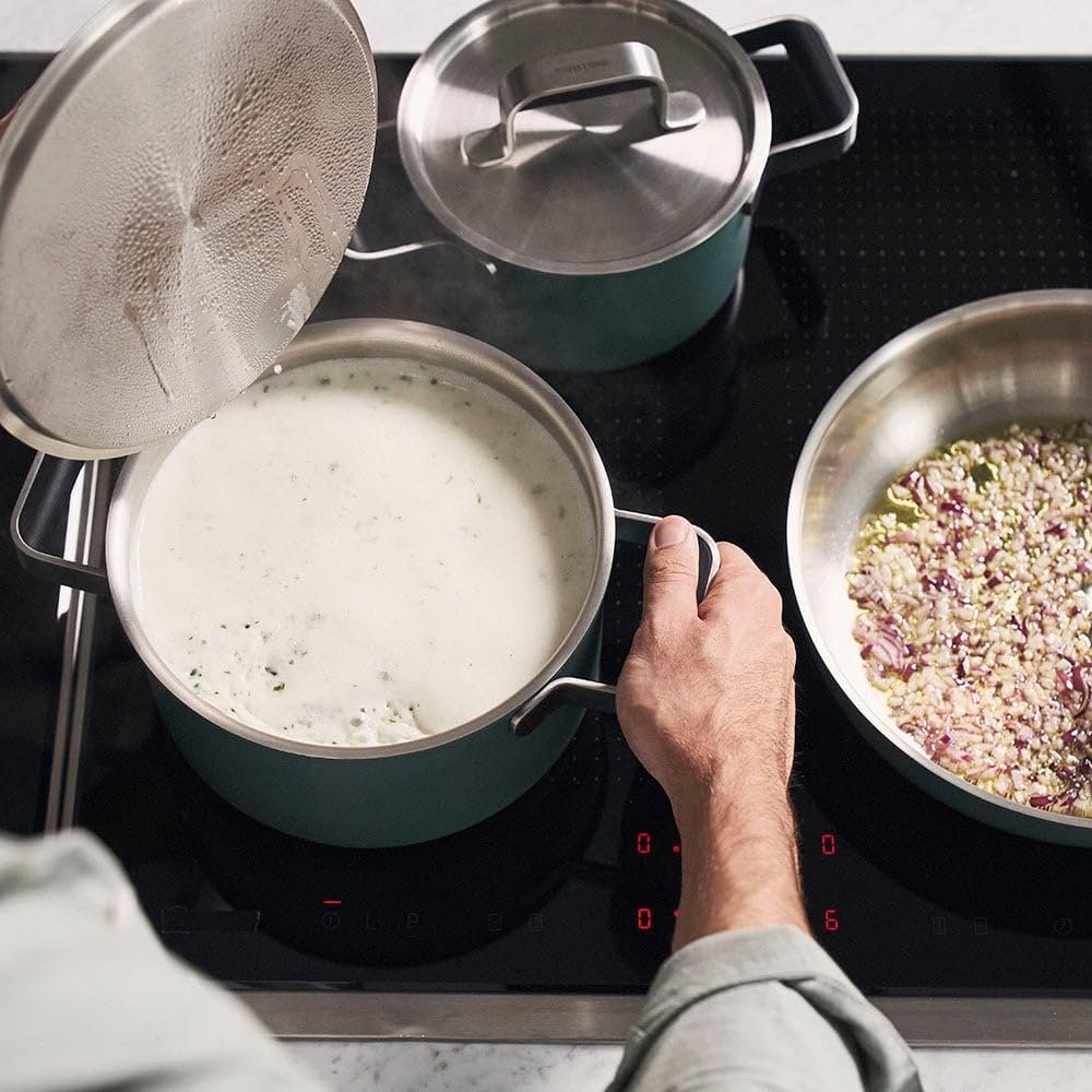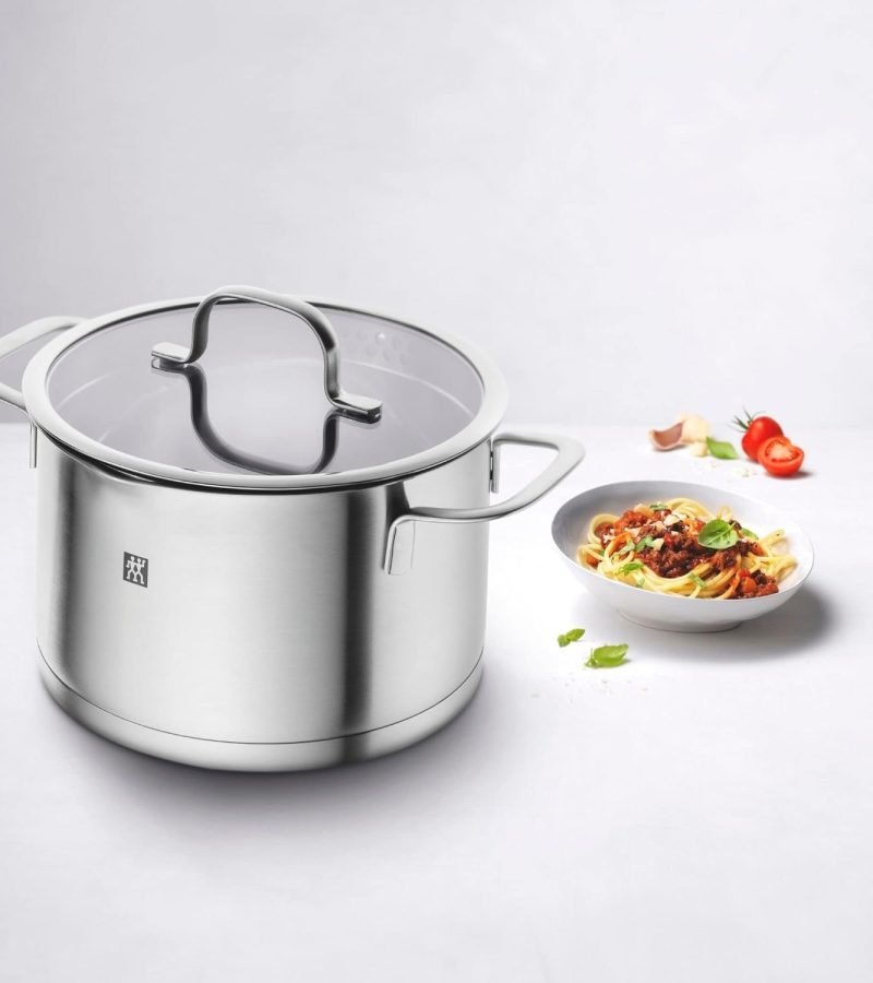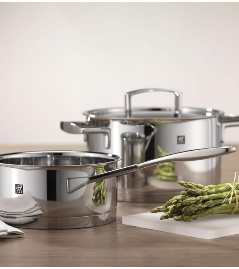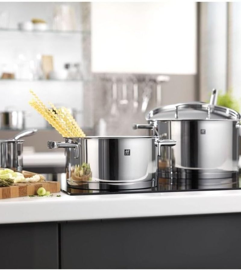 Según la colección, incorporan tapaderas de vidrio templado o acero inoxidable, diseñadas para mantener el calor y permitir un control visual de los alimentos. En algunas líneas, Zwilling añade innovaciones como bordes antigoteo o sellos de silicona que aportan practicidad al uso diario.
