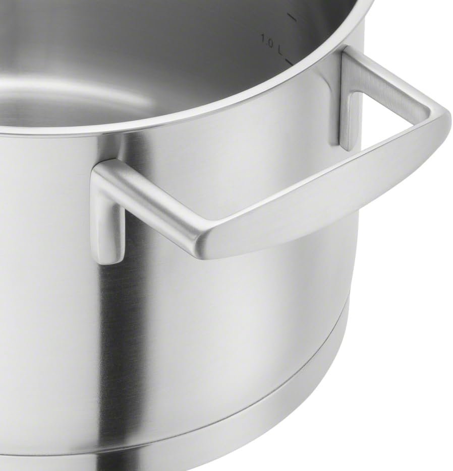 Sus asas ergonómicas y resistentes al calor garantizan seguridad y comodidad. El acero inoxidable de alta calidad asegura una larga vida útil, higiene y fácil limpieza.